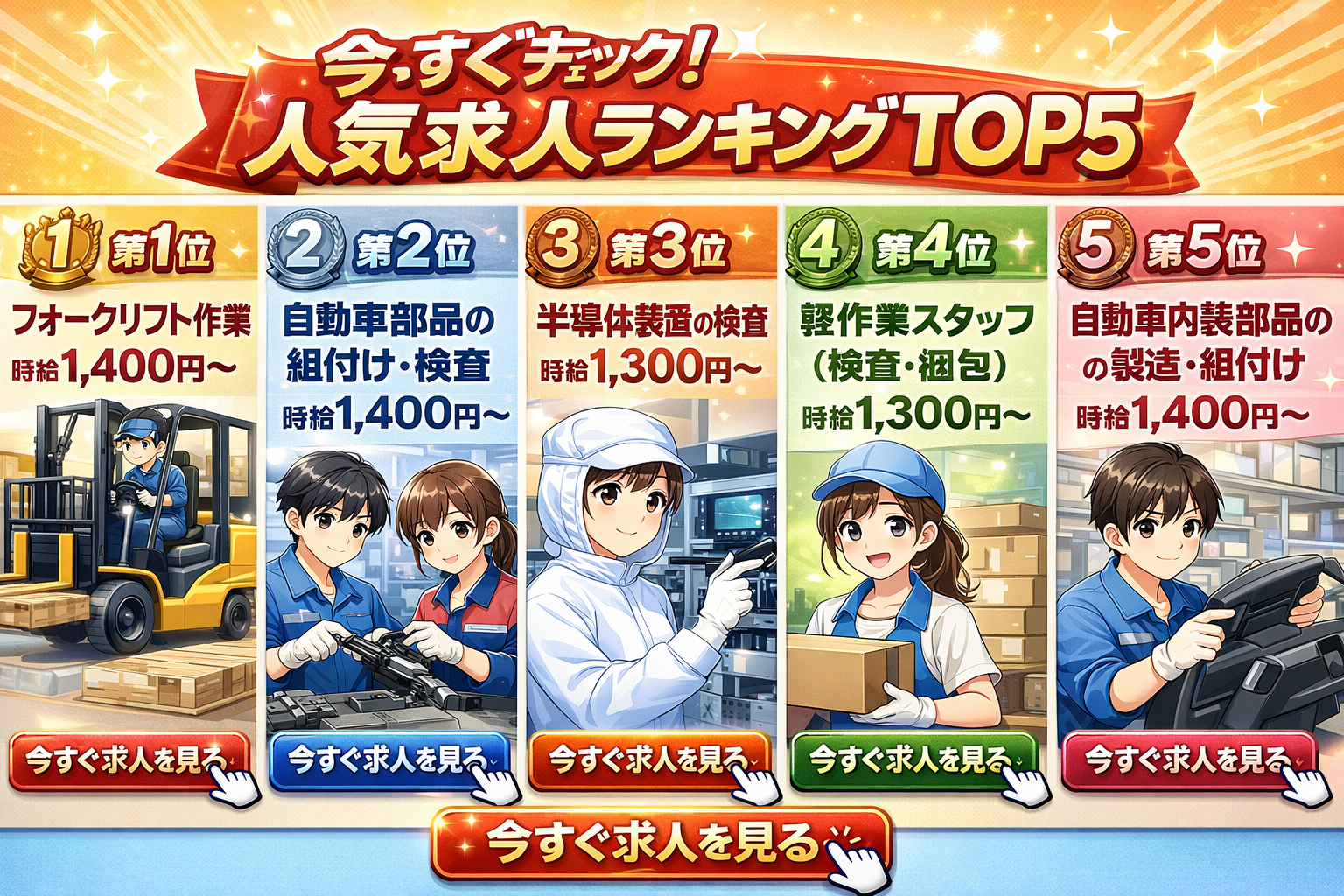 【2026年3月版】人気求人ランキングTOP5|今応募が集まっているお仕事をご紹介!